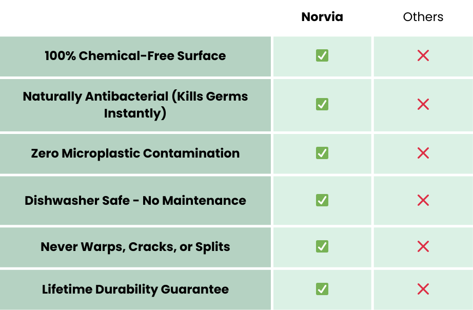 I was constantly scrubbing our wood board, never feeling like it was clean enough for my family. Now I just rinse this titanium board and know it's perfectly sterile every time. The constant anxiety about contamination is finally gone.